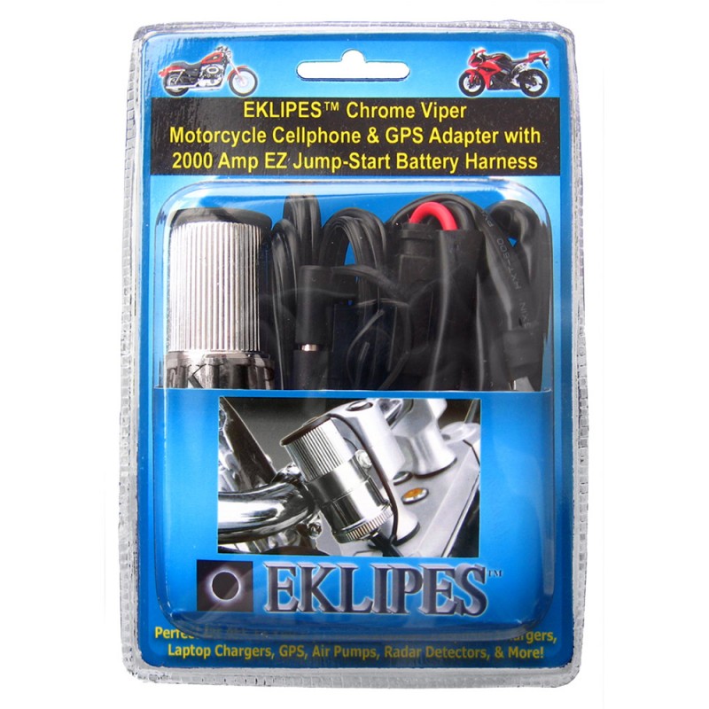 Our New EK1-109 EKLIPES™ Chrome Viper Power Socket System is one of our Newest Motorcycle Cellphone & GPS Adapters on the Market today! This system is ready to go and completely compatible with most 12 Volt Battery Chargers, Cellphone Chargers, Radar Detectors, GPS, Air Pumps, Compatible Heated Clothing and Motorcycle Battery Chargers.